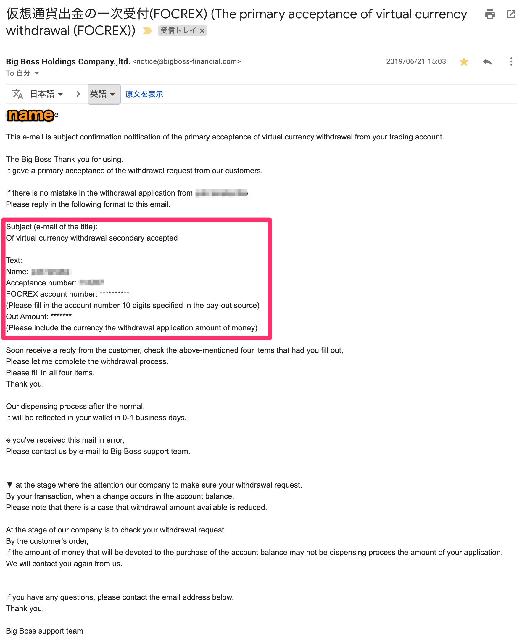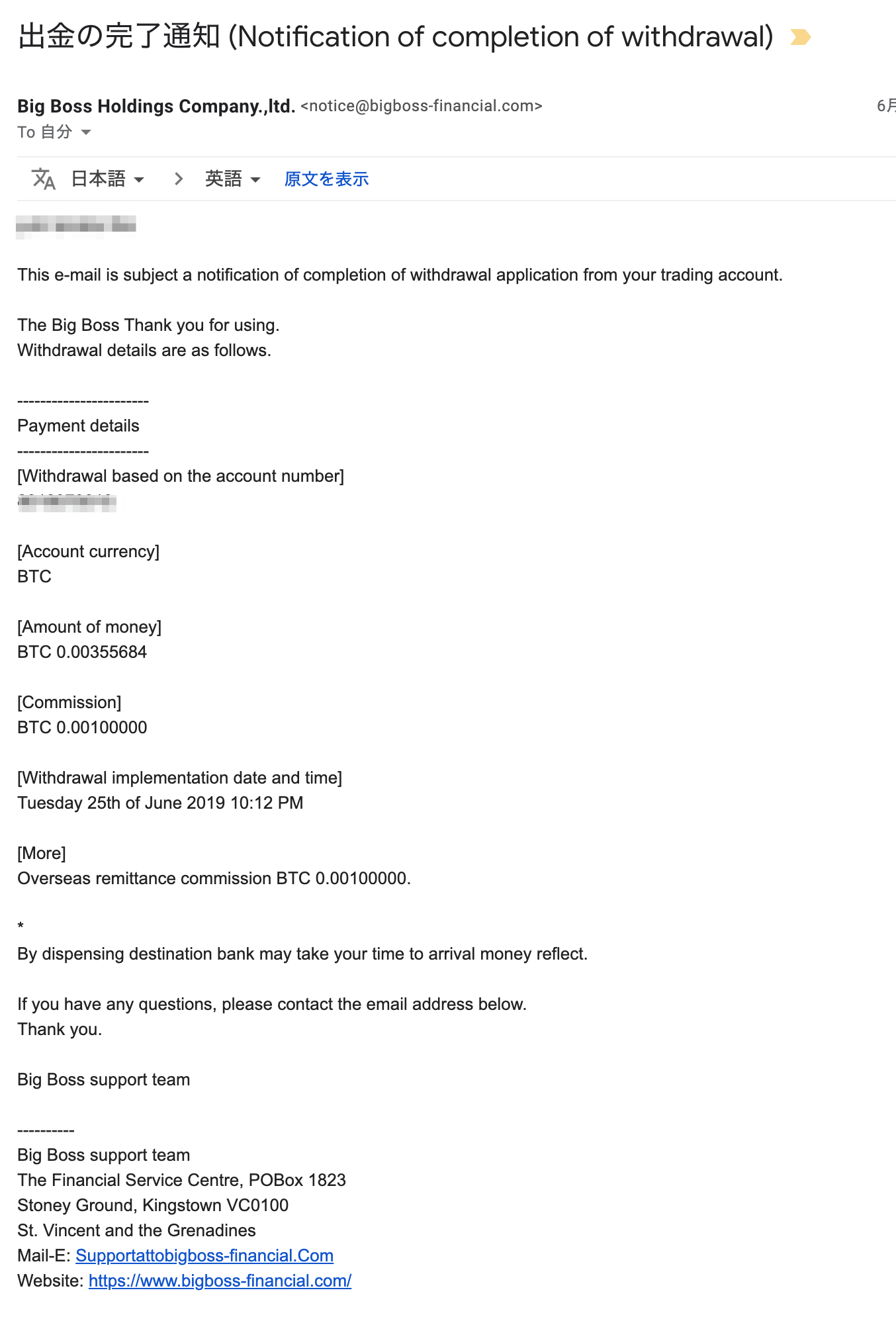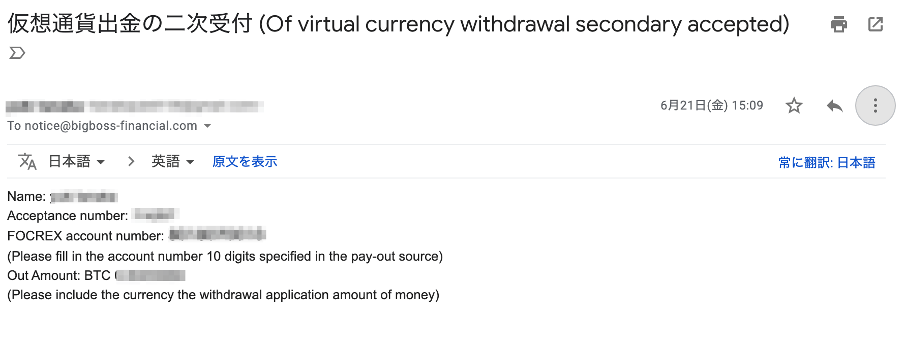 8.E-mail will be delivered, which notifies that withdrawal has been completed