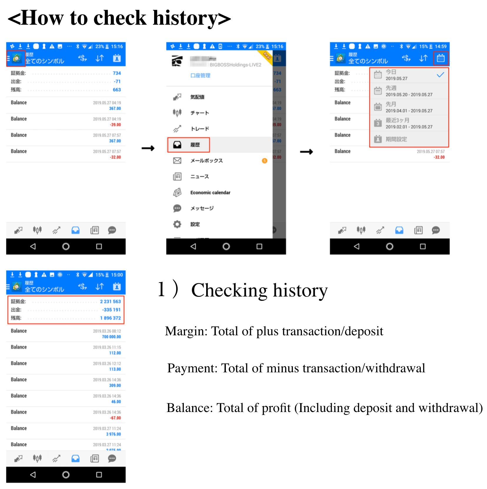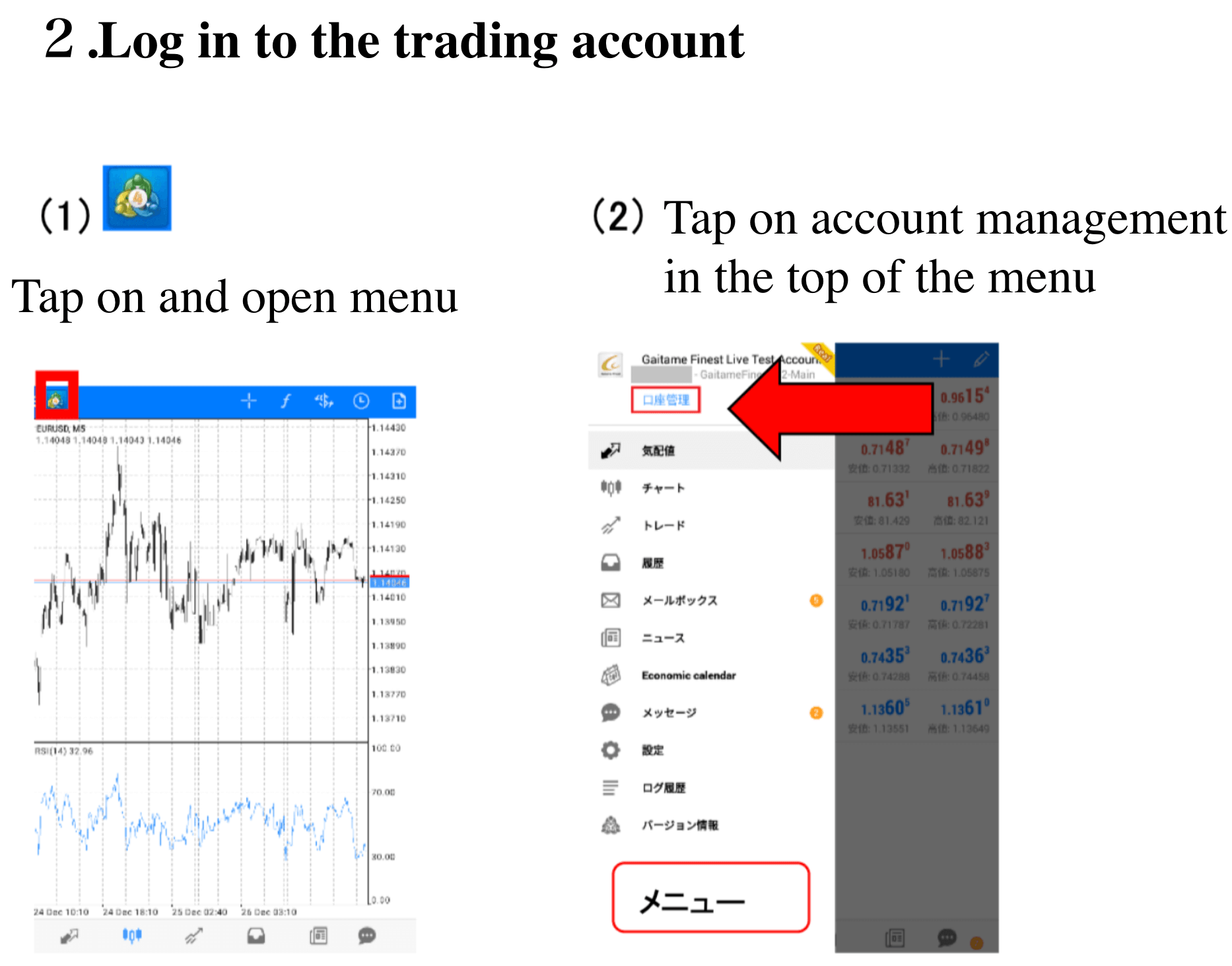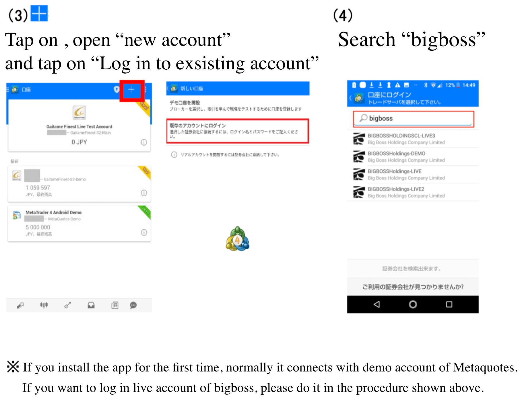 MT4 app log in/ how to use and check history