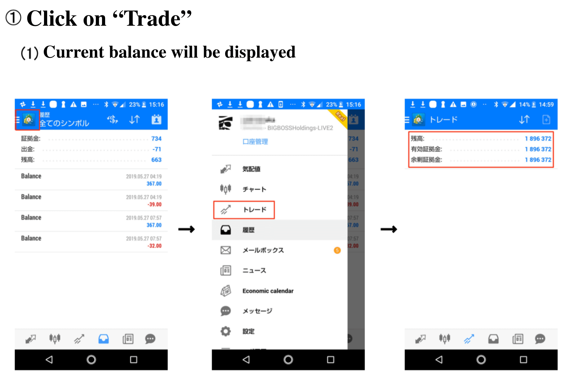 If you deposit directly to BigBoss, using Bitcoin, BigBoss owned “FOCREX” rate will be applied. After that, it will be automatically converted to JPY, and will be deposited to MT4 account.