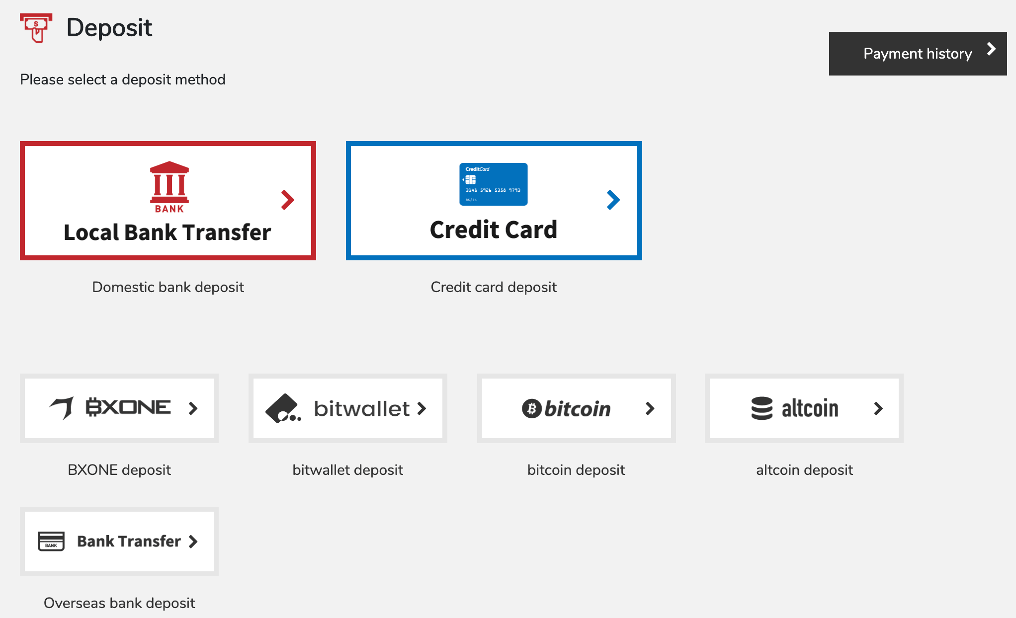 - Deposit using cryptocurrency