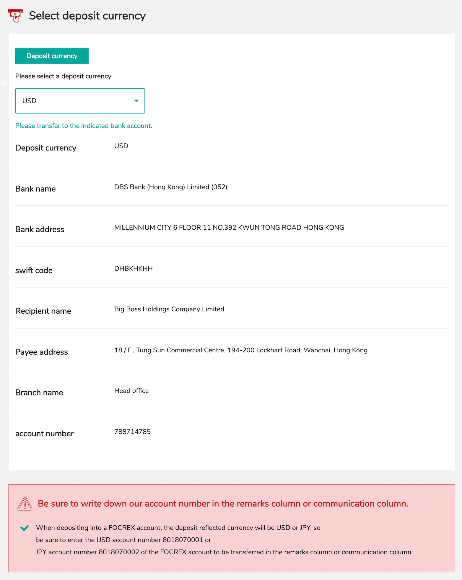 - Select “Deposit Currency”