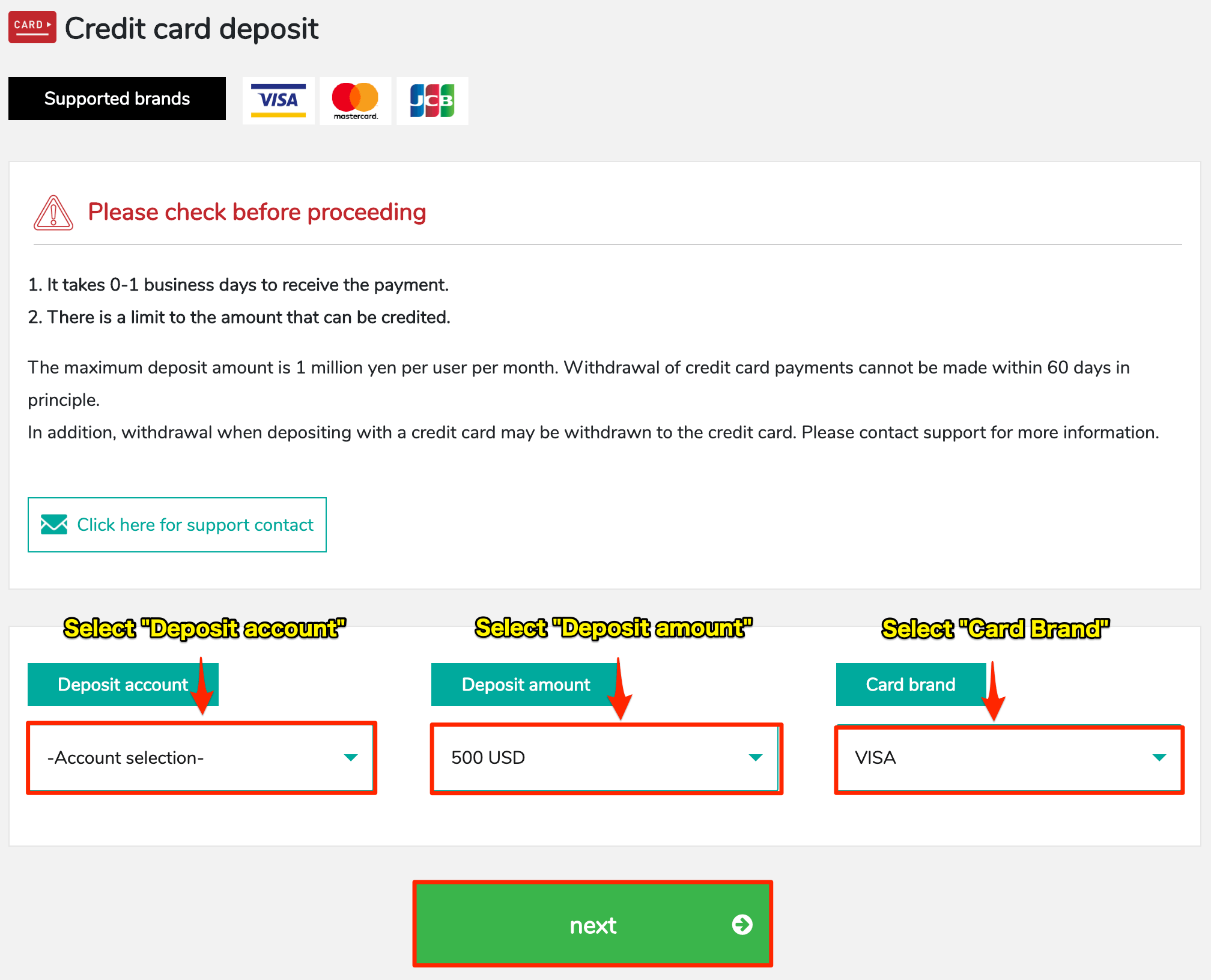- Deposit using credit card