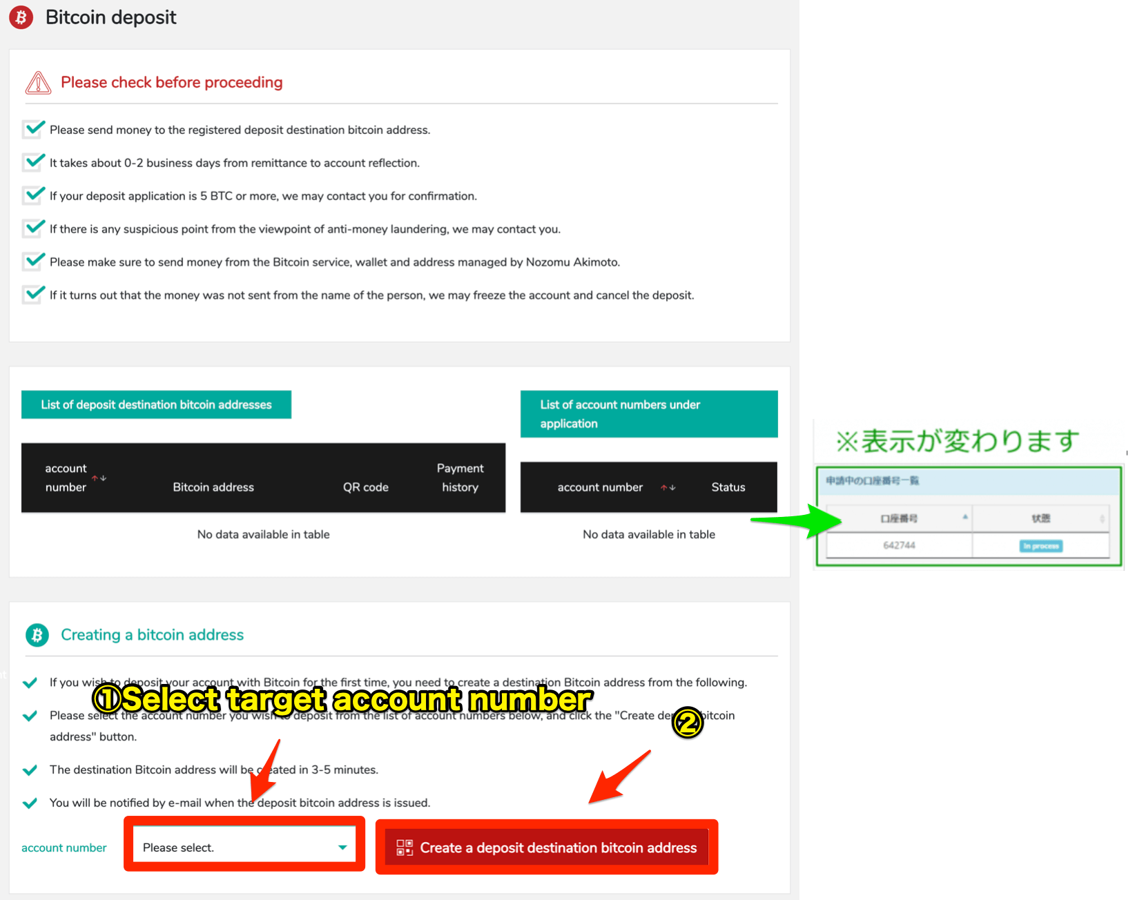 3:Select the withdrawal address registered in item “3・4”