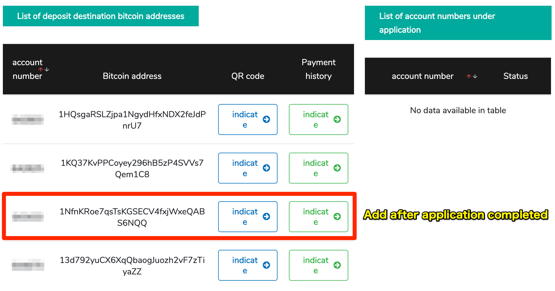 *BTC address for the account you applied will be added