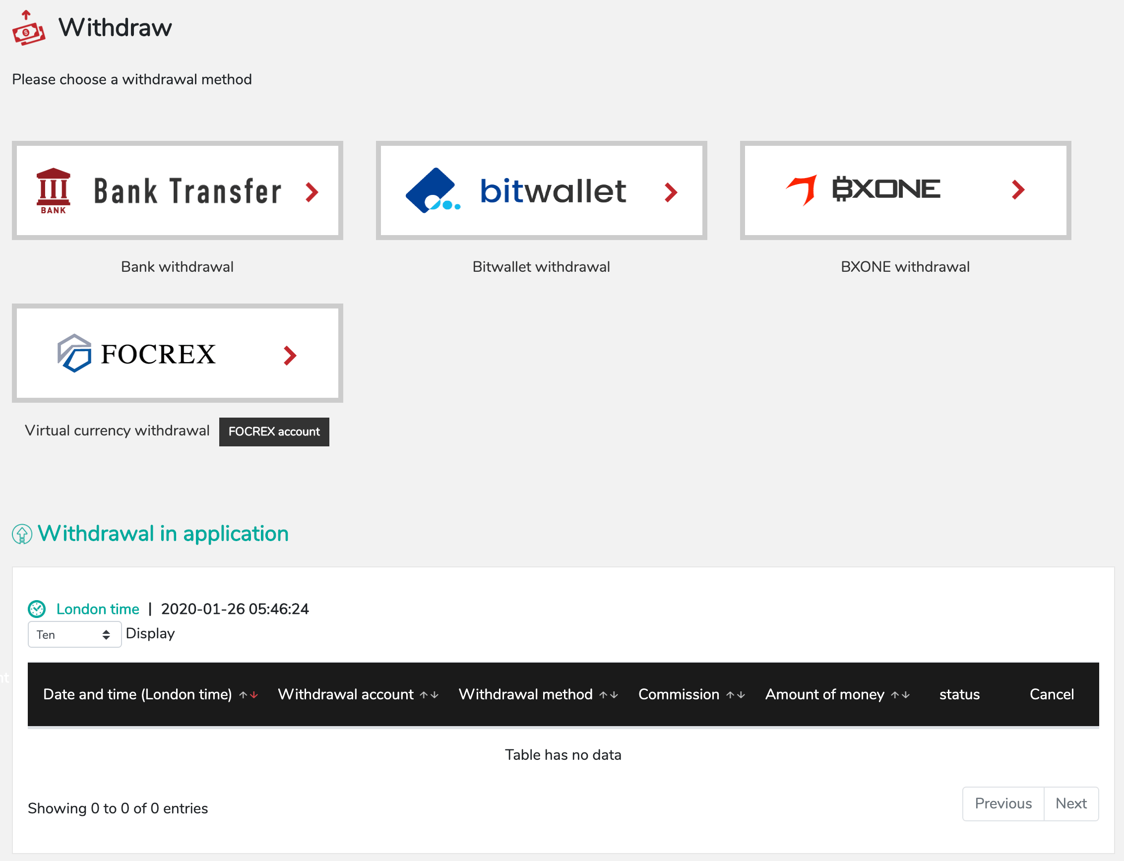 - Click “List of withdrawal methods”