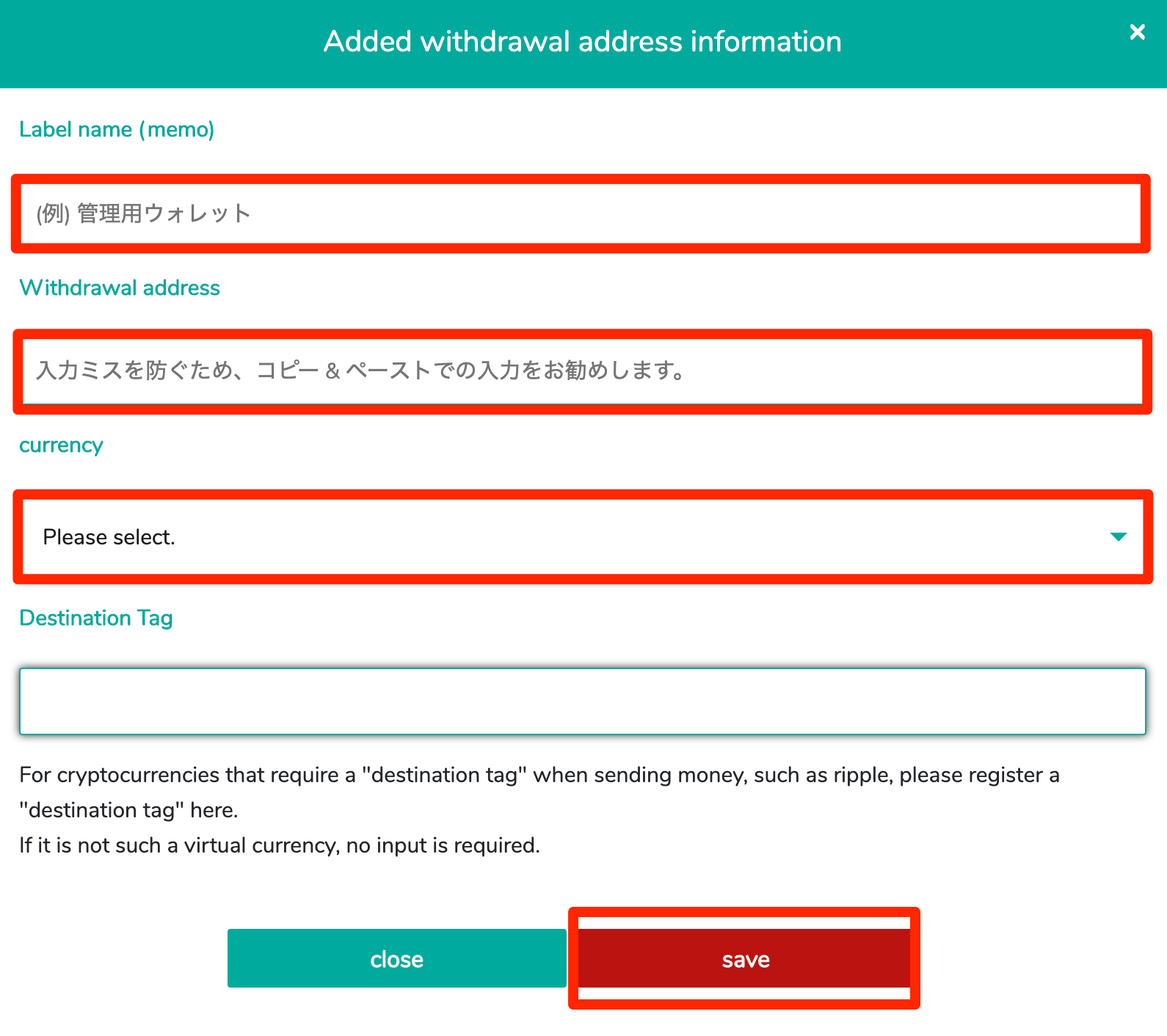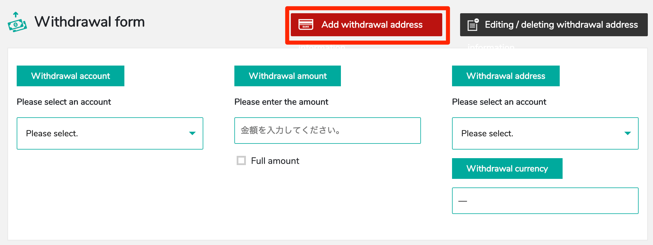 3. Click “Add withdrawal address information”
