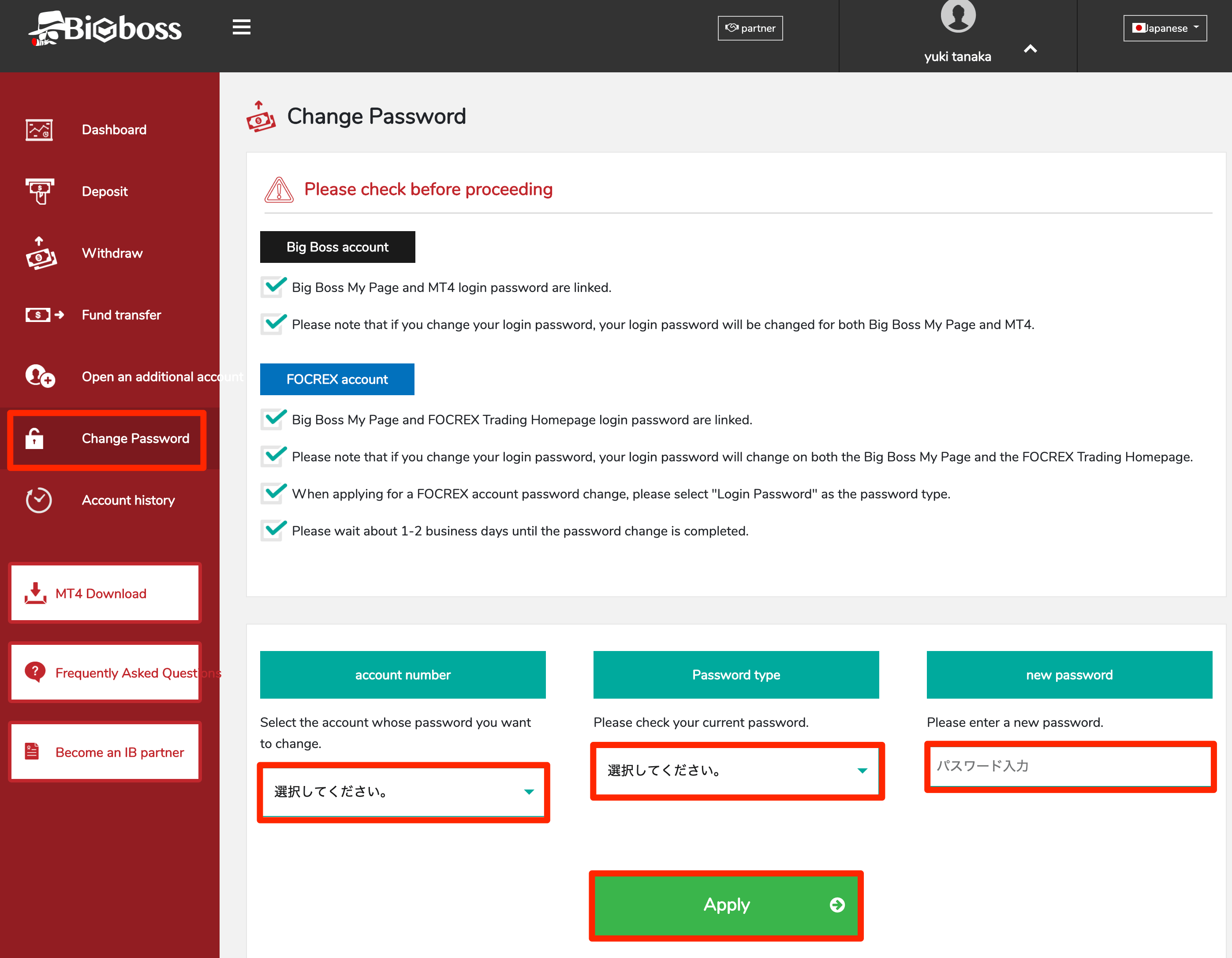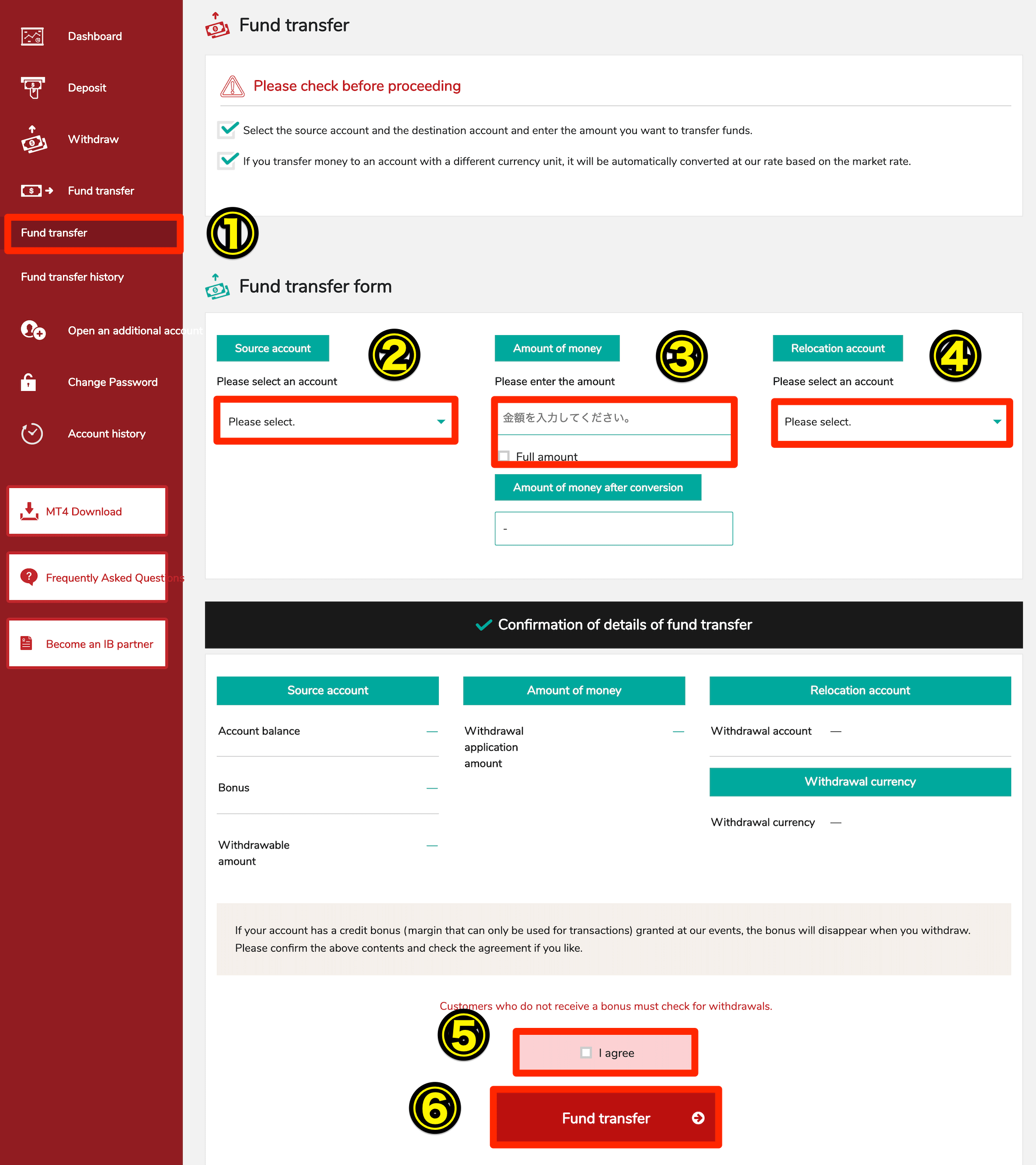 At that time, you need to enter the “MT4 account number to which payment is reflected” in the remarks and communication fields at the time of the procedure.