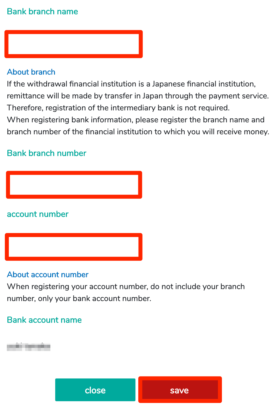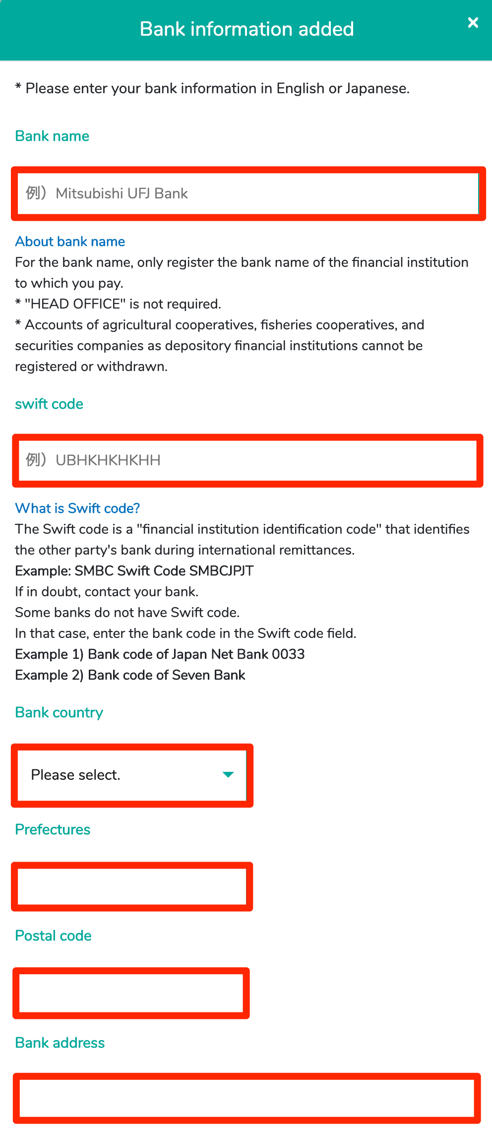 - If you mistakingly input the bank information, is not possible